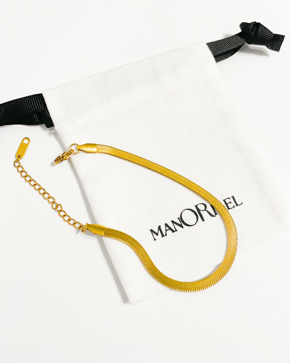 Le bracelet serpentine MANORIBEL est une version améliorée du bracelet lisse classique, il est soigneusement fabriqué à la main ensuite doté d´une couche épaisse d´or de 18 carats sans toxines conçu pour résister à l´eau. Sa texture dorée élégamment rayée fait de lui un bijoux solide qui résistera à l'usure quotidienne tout en étant incroyablement léger si bien que vous oublierez que vous le portez à votre poignée. C'est une de nos pièce favorite et on adore la façon dont il complètera votre tenue sans en faire trop. Porté le en ensemble avec notre collier serpentine assorti, il vous donnera une apparence féminine soignée aussi bien pour le boulot que pour sortir dîner le soir.