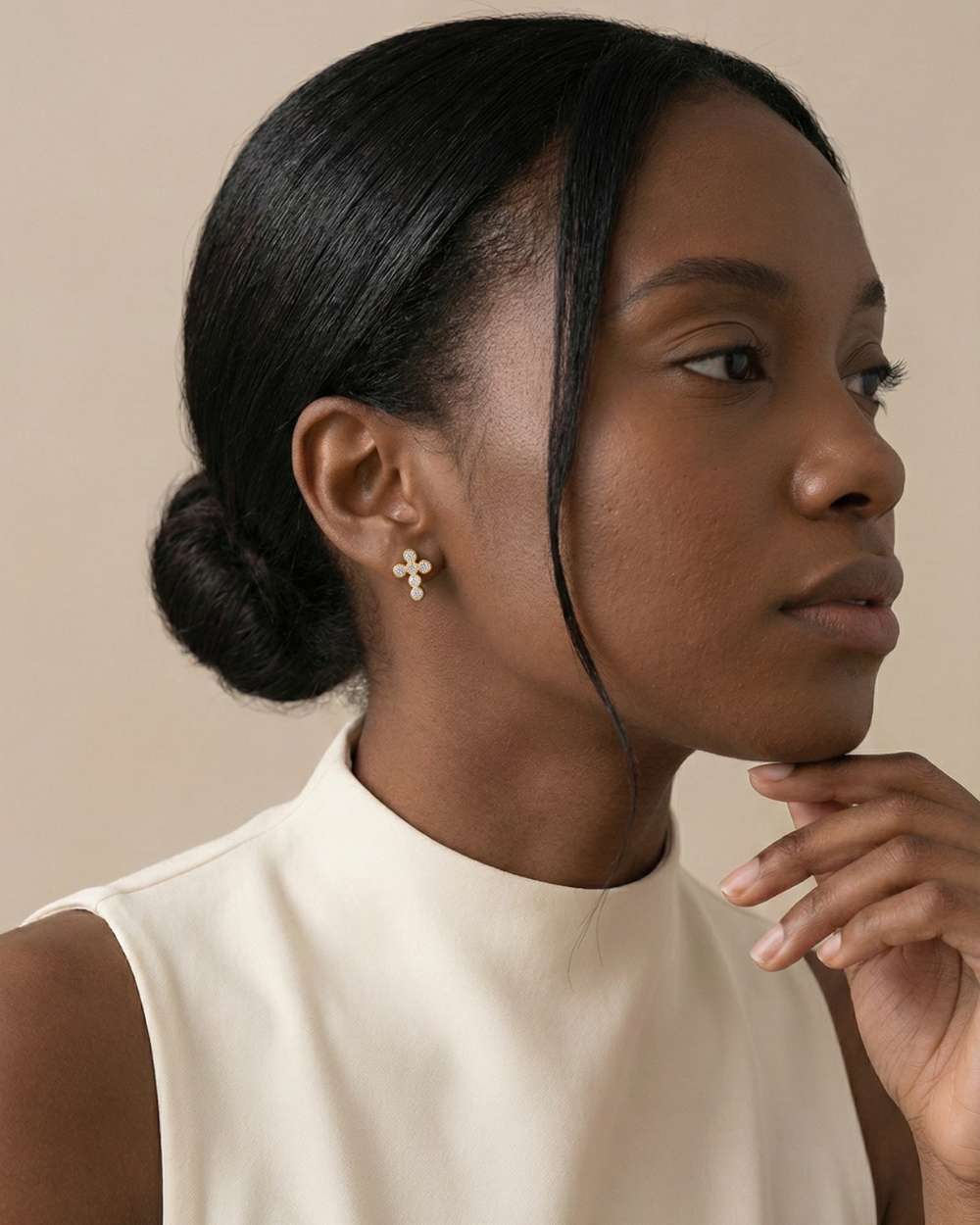 Nos pointes célestes sont l’alliance subtile entre la douceur de la perle et la structure du symbole. Elle a été conçue pour t'illuminer avec son éclat sacré, à la fois minimaliste et moderne, qui te donnera juste ce qu’il faut d’éclat.
