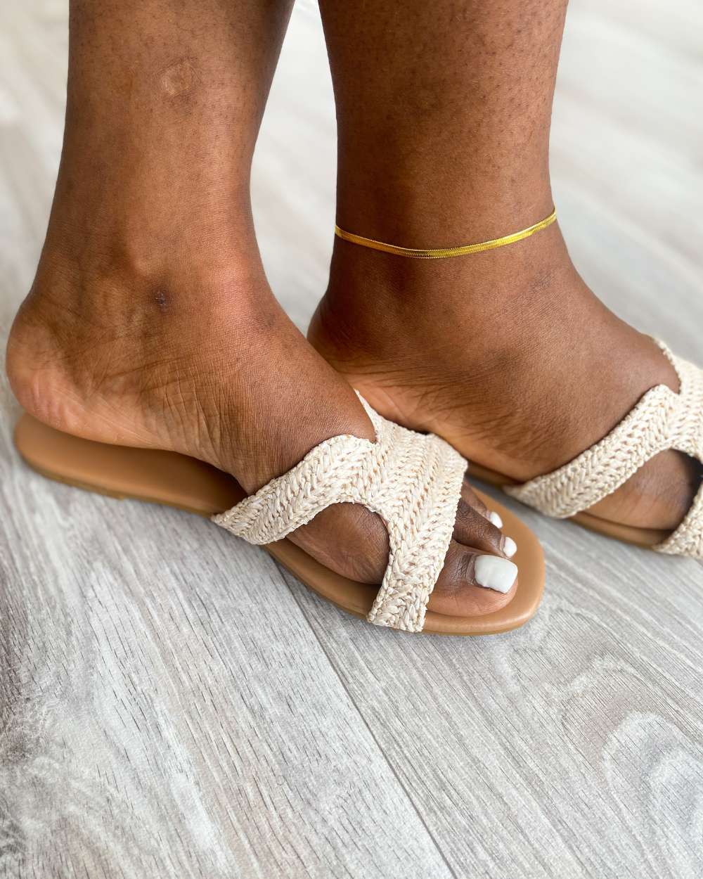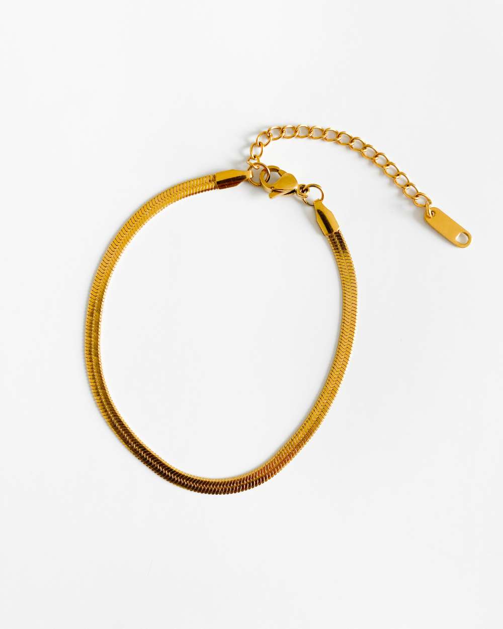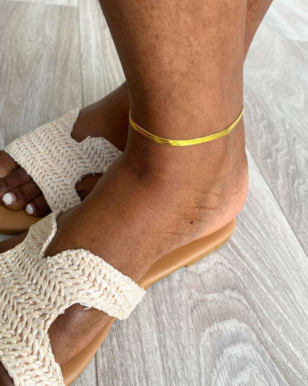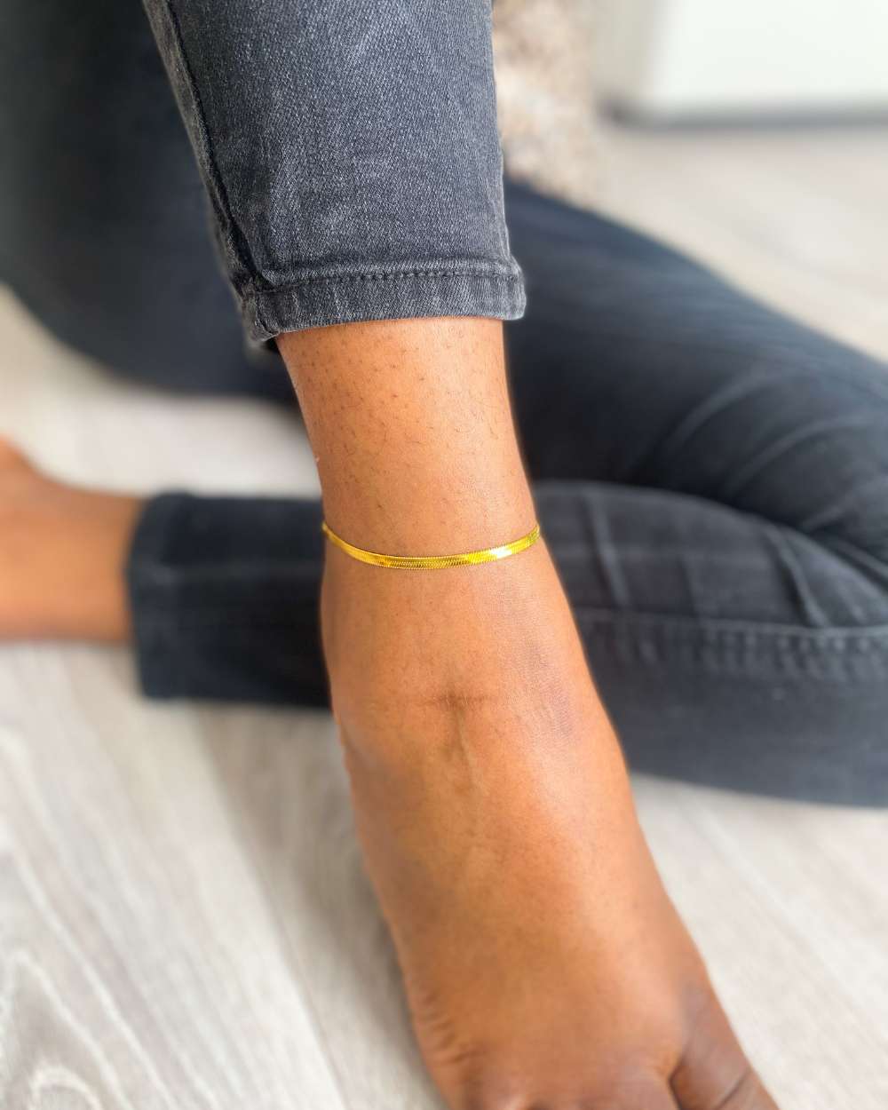 Affichez votre sens du style avec ce chic bracelet de cheville plaqué or.