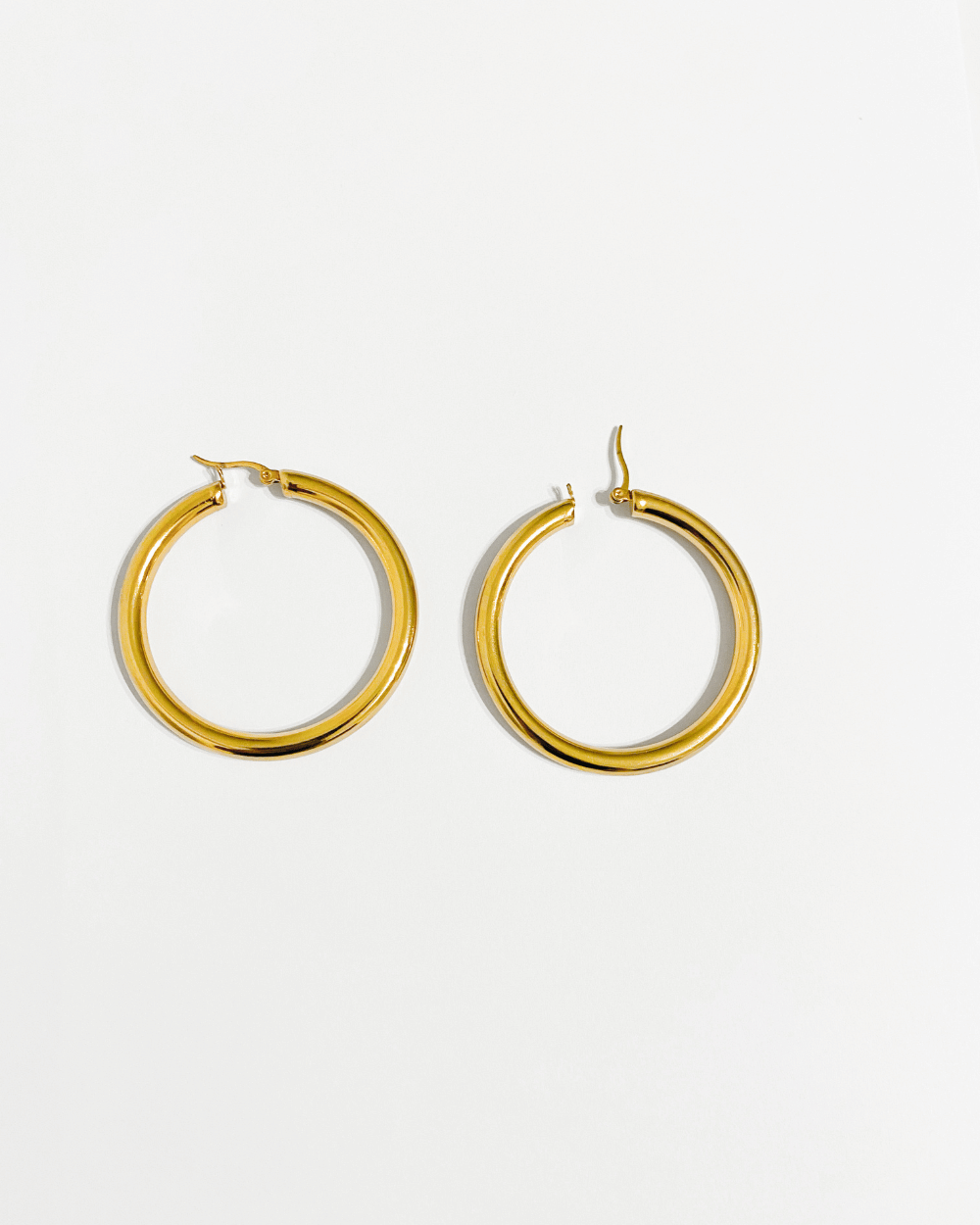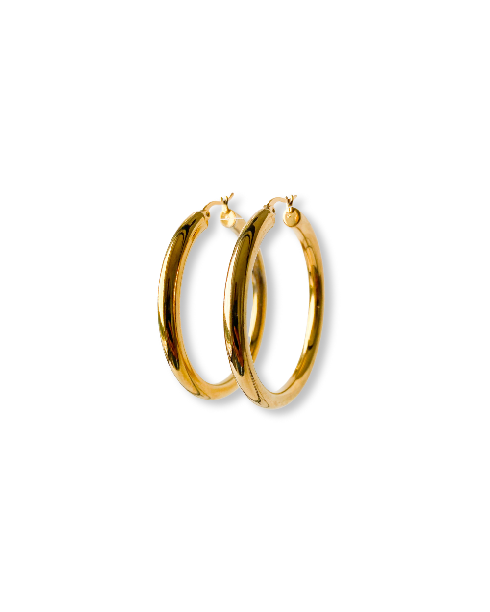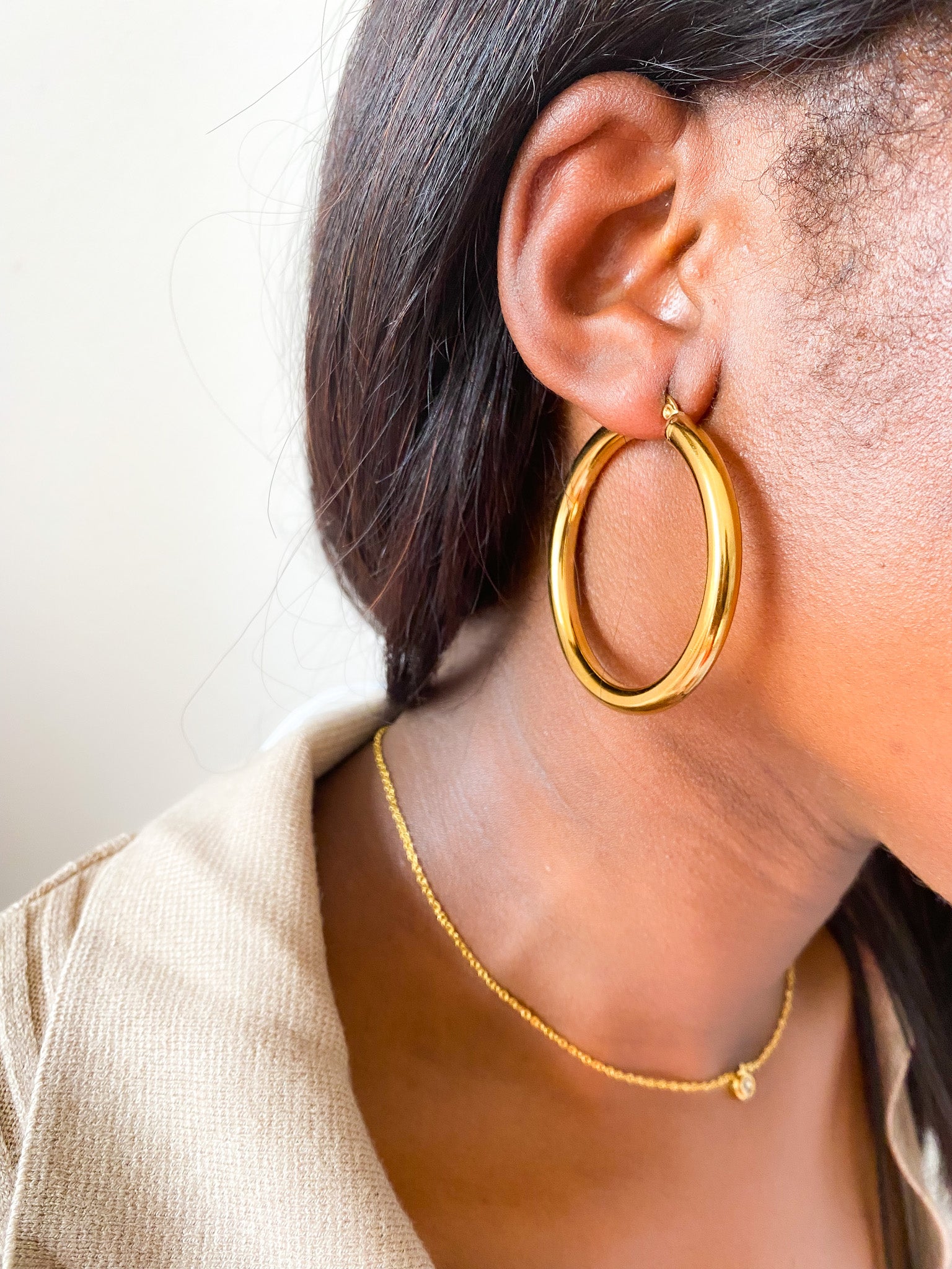 Simple et élégante cette créole épaisse est un classique de la haute joaillerie. Elle n´est pas juste chic, mais elle est aussi incroyablement confortable et robuste ! Dotée d´une texture lisse plaquée or de 18 carats, notre boucle d´oreille favorite est soigneusement fabriquée à la main et a été conçue pour vous sublimer au quotidien. Elle est sans aucun doute la pièce indispensable que vous devez avoir dans votre boite à bijoux. Accessoirisez la avec notre collier serpentine pour ajouter une touche de féminité à votre look de tous les jours. L´élégance en toute simplicité.
