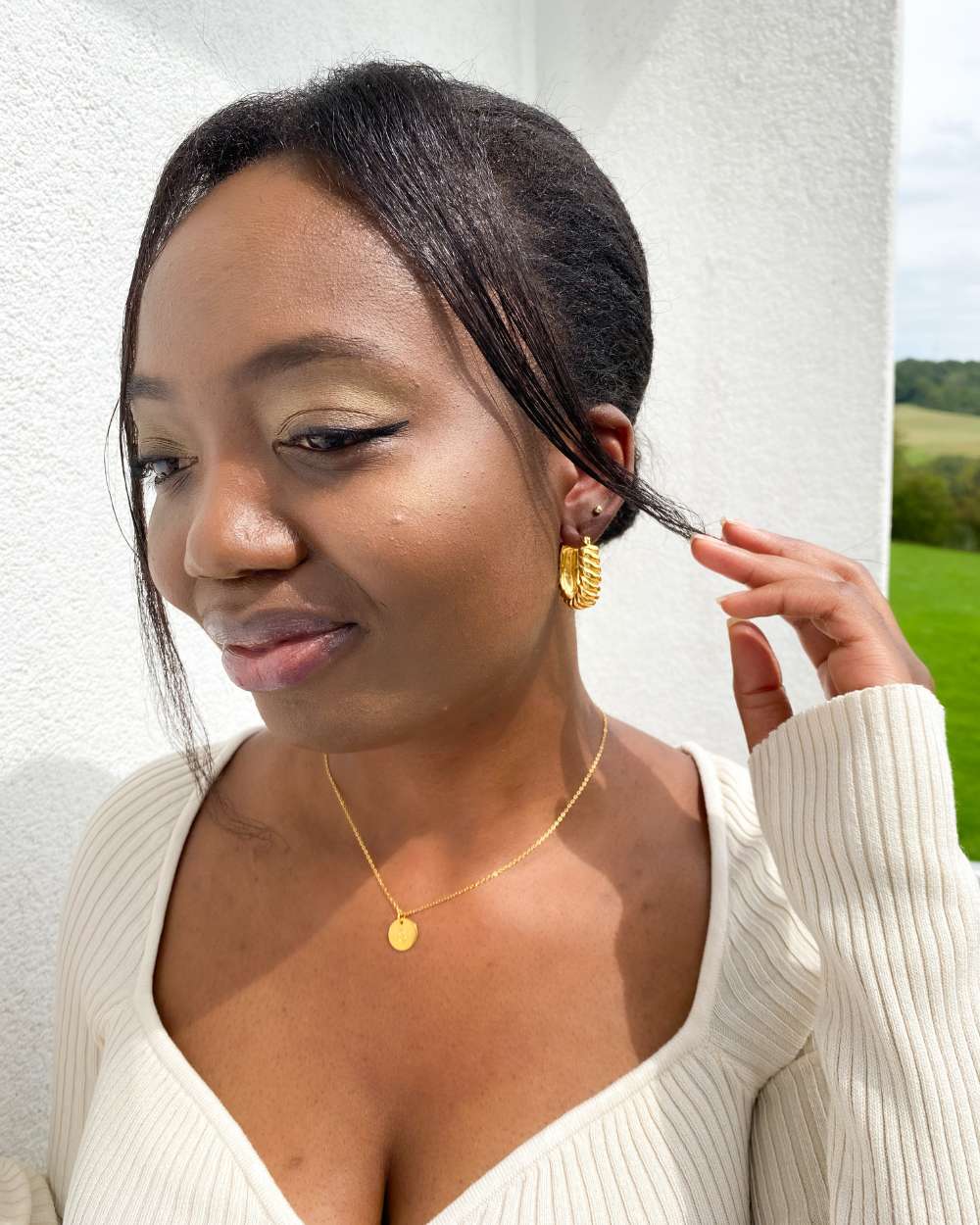 Style suggéré : Pour vous mettre en valeur avec la boucle d'oreille "Elysia", combinez-la avec un de nos collier et des bracelets assortis. Optez pour une coiffure naturelle et ondulée, laissant vos cheveux flotter librement autour de vos épaules pour encadrer subtilement le visage et faire ressortir votre beauté naturelle.