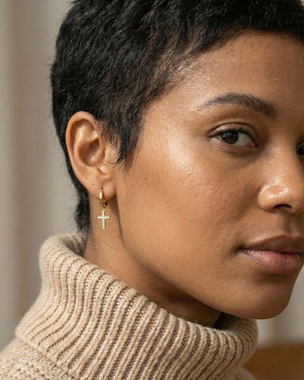 - Les boucles et les puces illuminent ton visage et ton regard.